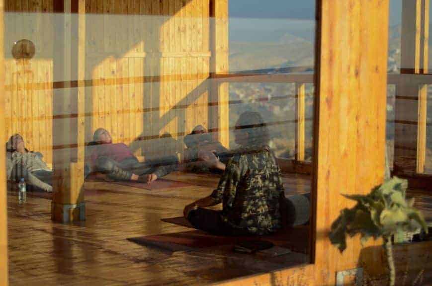Das kleine Extra befindet sich ganz oben, auf der letzten Terrasse, wo es auch einen Yogaraum gibt. Es handelt sich um einen wunderschönen Raum, der ganz aus Holz gebaut und überdacht ist, damit die Yogastunden ohne Ausnahme jeden Tag stattfinden können.